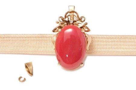 お客様がお持ちのサンゴペンダントを帯留めにジュエリーリメイクしました。