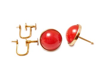 お客様がお持ちのサンゴイヤリングをピアスへ加工しました。