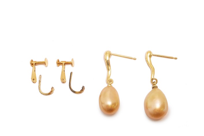 お客様がお持ちのパールイヤリングをピアスへ加工しました。