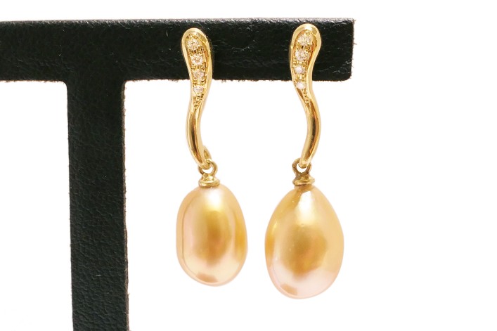 お客様がお持ちのパールイヤリングは、ダイヤであしらわれたパーツの下に、ゴールデンパールがぶら下がったデザイン。
