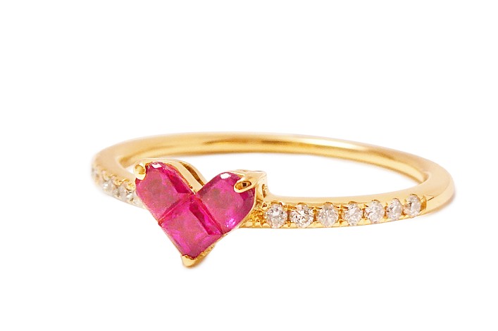 お客様がお持ちのルビーリングはミステリーセッティングでセットされています。ミステリーセッティングとは、石の側面に溝を付けて石同士をかみ合わせてセットする留め方です。そのルビーが1p取れてしまった修理を行いました。