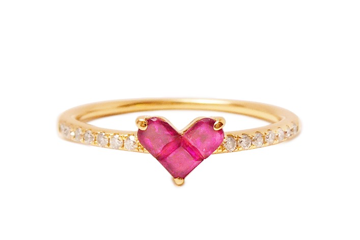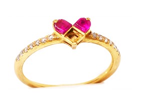 同じカラーのルビーを手配し、石と石をかみ合わせられる溝を付けてセッティングしました。